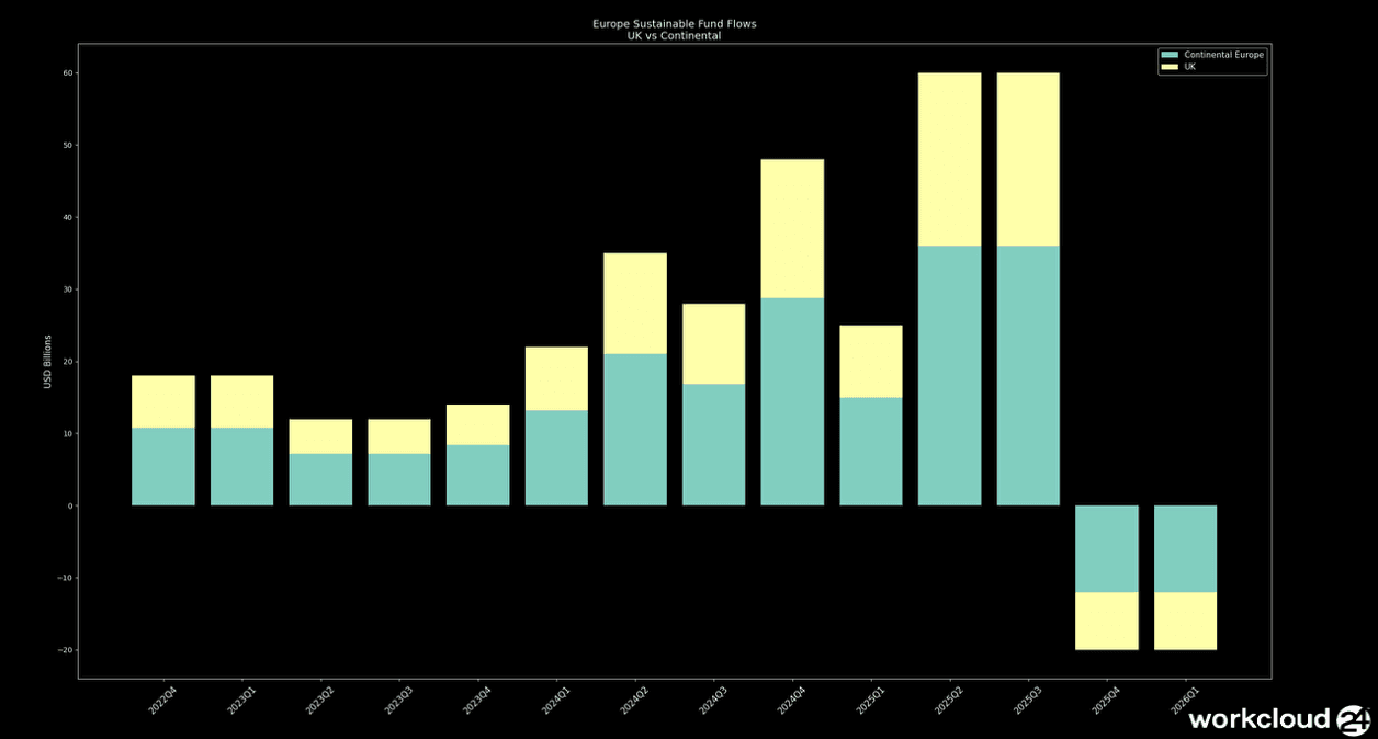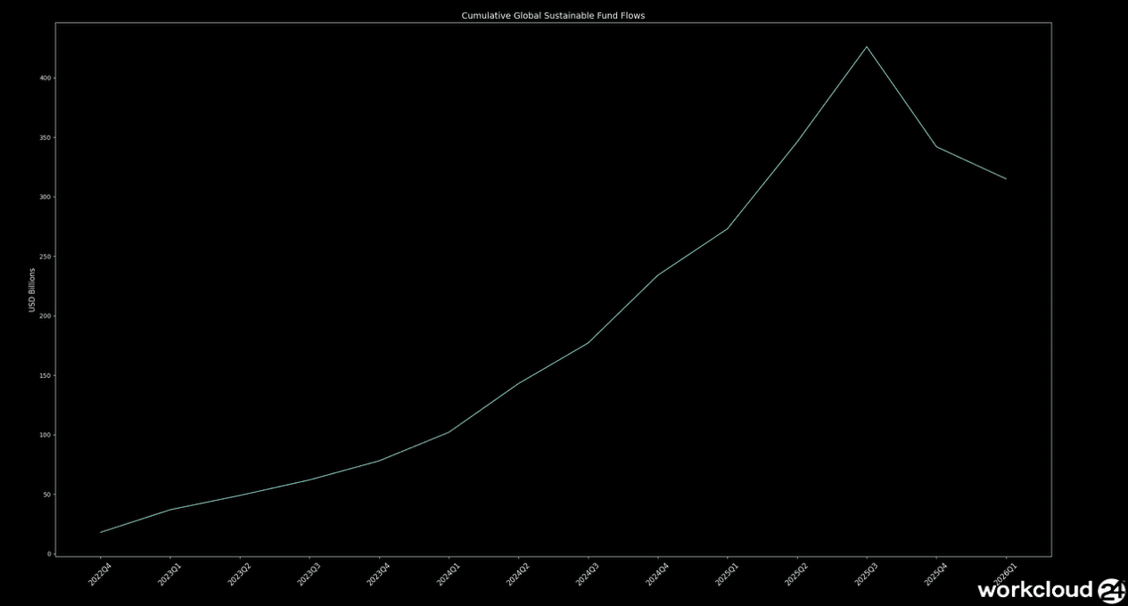 In the fourth quarter of 2025, global sustainable mutual funds and ETFs saw roughly $27 billion in net outflows, an improvement from nearly $55 billions of redemptions in the previous quarter. In Europe specifically, sustainable funds experienced about $20 billion in outflows in Q4, following close to $50 billion in redemptions in Q3. Importantly, a substantial portion of the European outflows appears to have been driven by large UK institutional investors reallocating capital from standard pooled ESG products into bespoke segregated mandates. That suggests implementation changes rather than a wholesale retreat from sustainability.