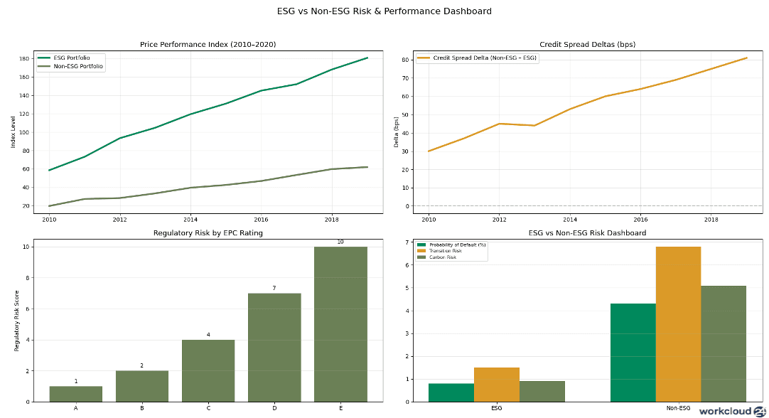 The ESG vs non-ESG risk dashboard consolidates this picture: stronger long-term performance, lower credit risk, and more favourable future liquidity conditions are increasingly concentrated in ESG-aligned assets. For investors, lenders, and asset managers, the conclusion is becoming quantitatively clear ESG alignment is now a forward-looking financial risk factor, not a thematic overlay, and its influence on valuation and debt availability is only intensifying.